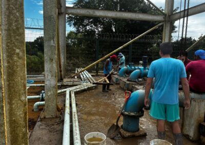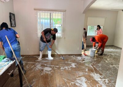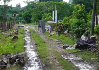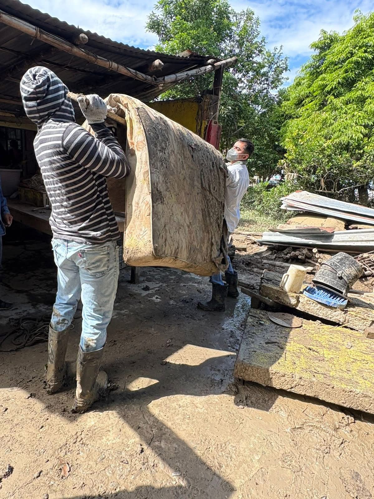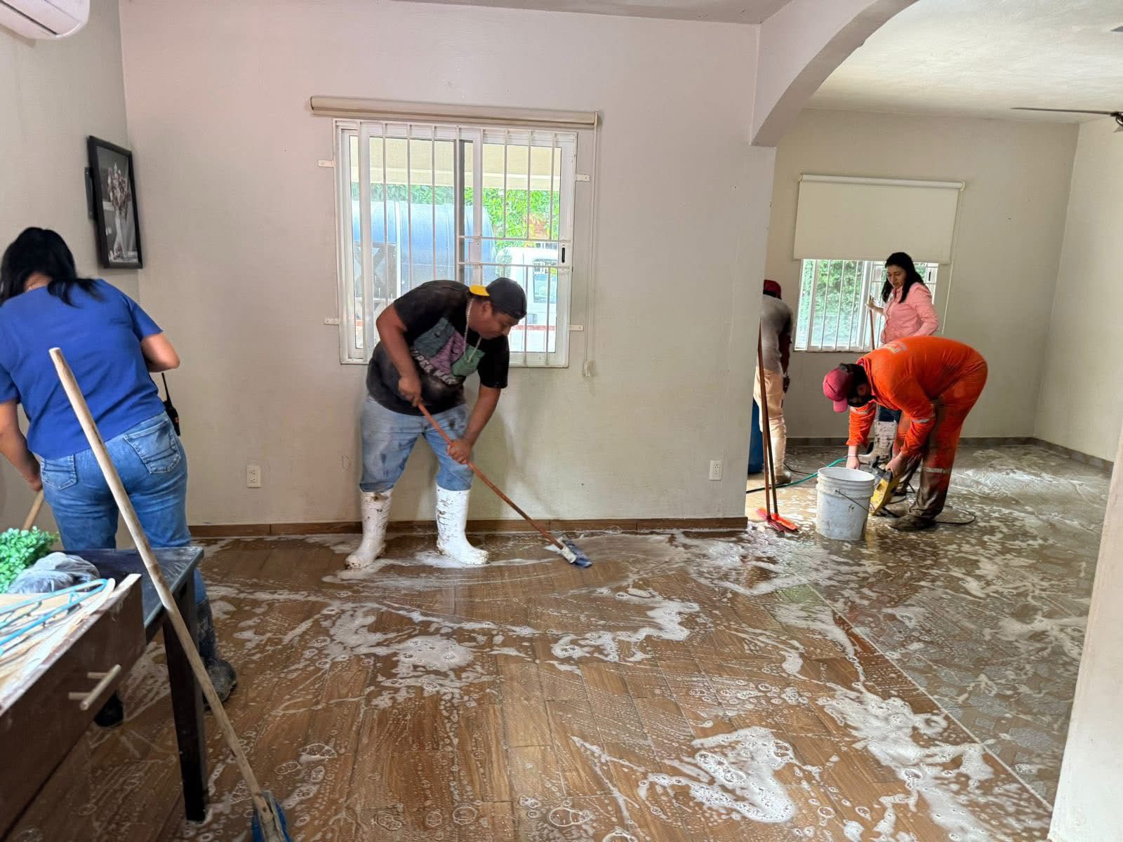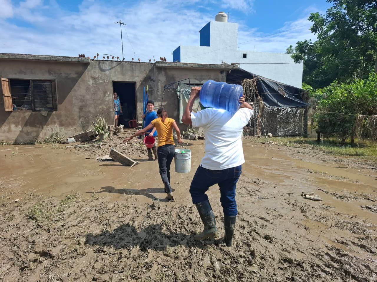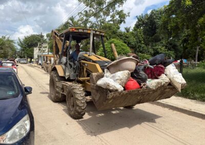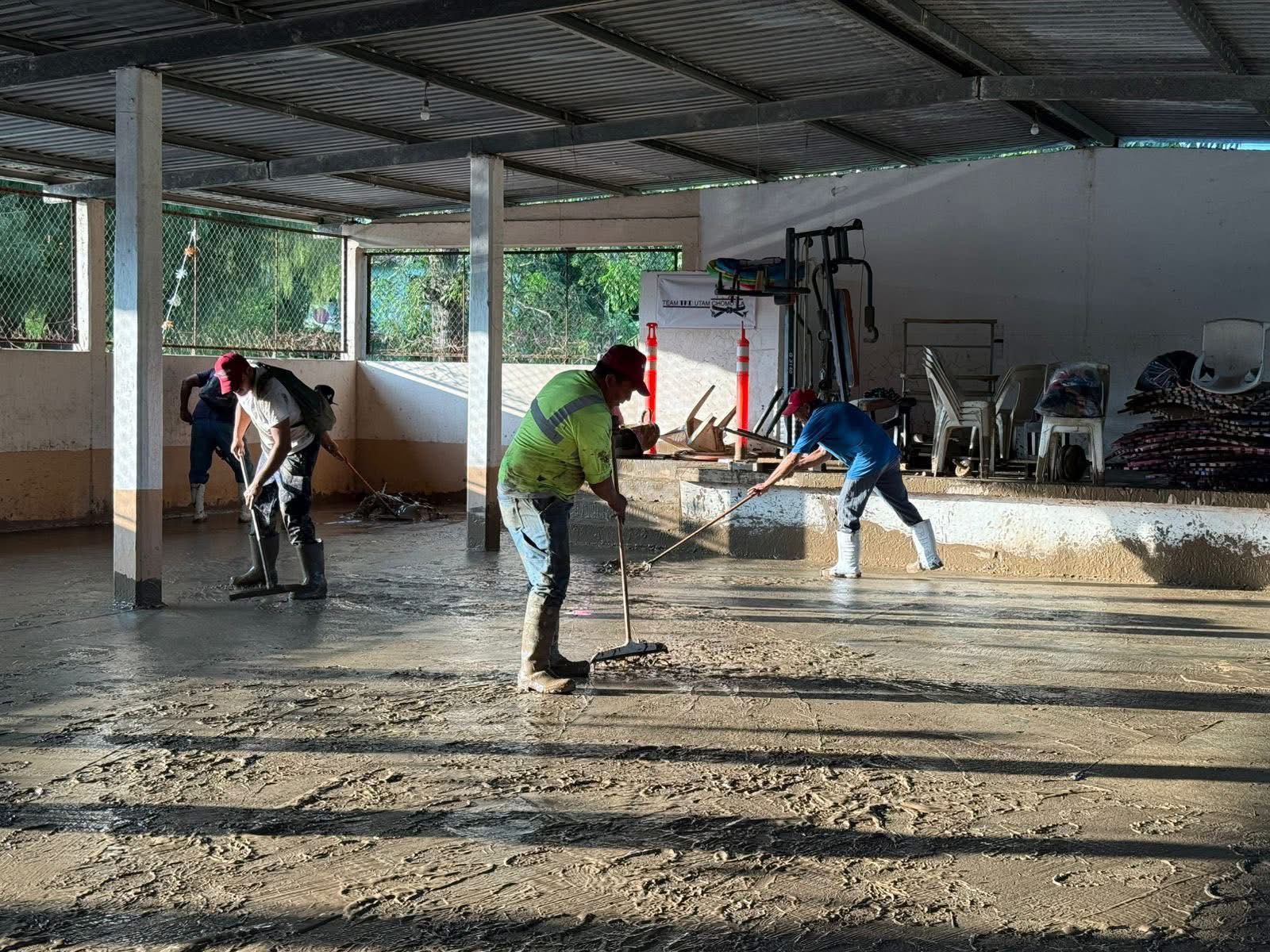 Durante el día, se avanzó también en los trabajos de rehabilitación y limpieza en distintas zonas del municipio. En Juana Moza se rehabilitan caminos con maquinaria; en la colonia Federico Blanco se abrieron accesos, iniciaron fumigaciones, se abasteció de agua a las viviendas y se apoyó a la escuela Josefa Ortiz de Domínguez con una hidrolavadora.