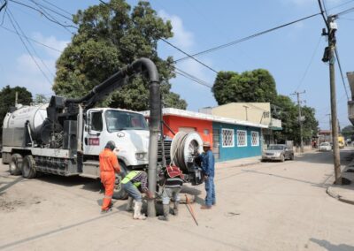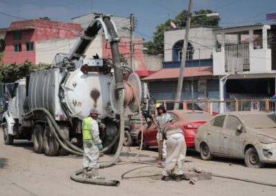 Las labores son efectuadas con unidades tipo vactor y equipos técnicos, con el propósito de restablecer el funcionamiento de las redes de alcantarillado que colapsaron a causa del arrastre de lodos y residuos durante la contingencia. Las acciones permiten avanzar en la normalización del servicio y atender la demanda de limpieza y liberación del drenaje en calles, avenidas y viviendas.