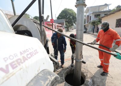 Poza Rica, Ver., miércoles 19 de noviembre de 2025.- En atención a las necesidades prioritarias de la población afectada por las pasadas inundaciones, el Gobierno del Estado, a través de la Secretaría de Infraestructura y Obras Públicas (SIOP) y la Comisión del Agua del Estado de Veracruz (CAEV), realiza trabajos de desazolve del drenaje sanitario en el fraccionamiento La Florida y en las colonias Las Gaviotas, Lázaro Cárdenas, Morelos y Magisterio.