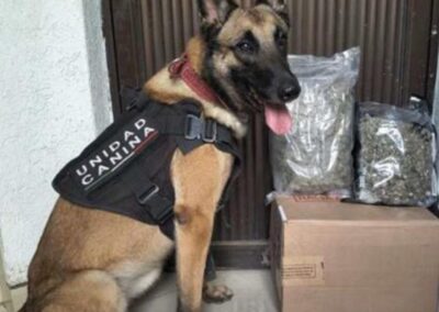 En Poza Rica y Veracruz, derivado de operativos efectuados en empresas dedicadas al envío de paquetería, binomios caninos de la Secretaría localizaron y aseguraron más de un kilogramo de hierba verde similar a la marihuana y tres vapeadores con THC.
