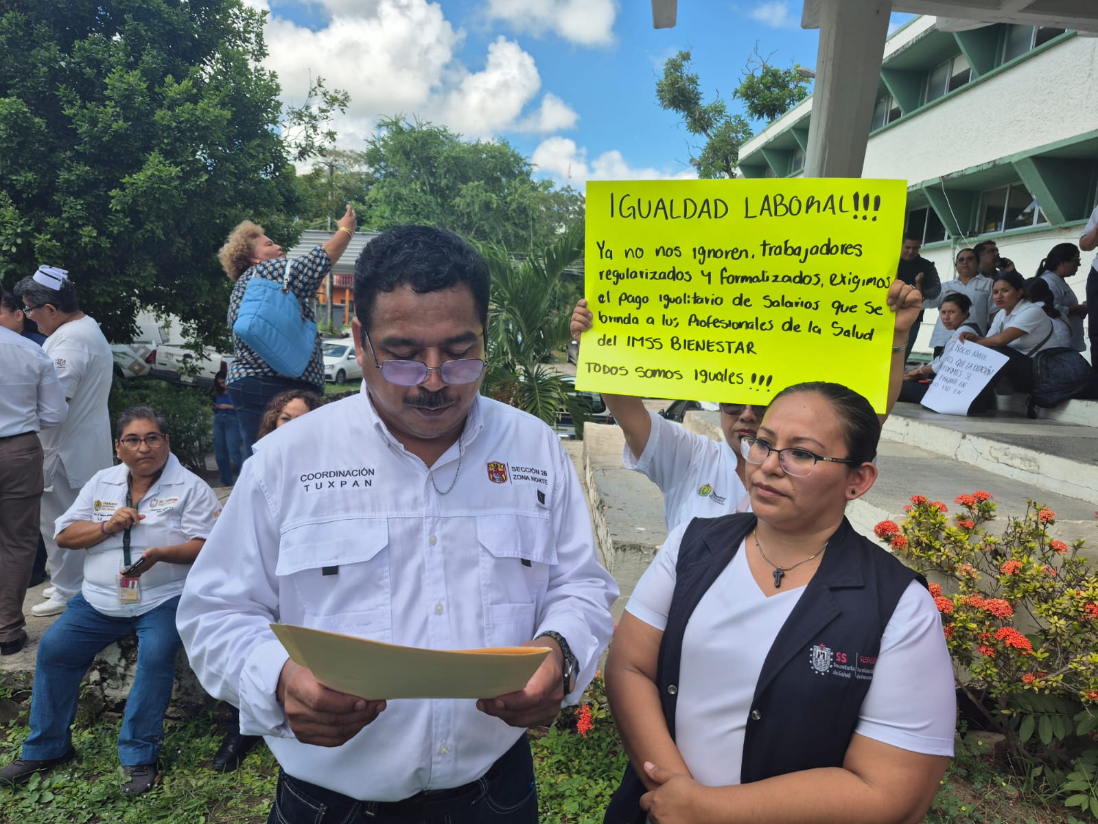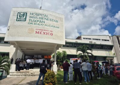 Las protestas fueron visibles con la colocación de lonas en la Jurisdicción Sanitaria N.º 3 de Poza Rica y concentraciones frente al Hospital IMSS-Bienestar “Dr. Emilio Alcázar” en Tuxpan, donde se manifestaron más de 90 trabajadores, mientras que otros continuaban brindando atención médica a los pacientes; en este municipio, el delegado sindical Luis Iglesias Rodillo, de la Subsección 7 de Tuxpan, informó que esta manifestación se realiza bajo la coordinación del doctor Reinaldo Maldonado Pérez, secretario general de la Sección 26 del Sindicato Nacional de Trabajadores de la Secretaría de Salud.