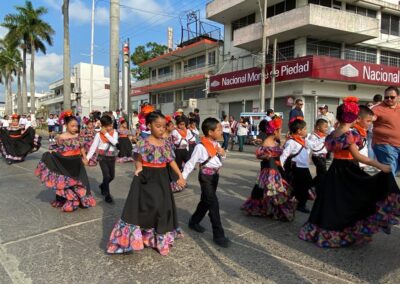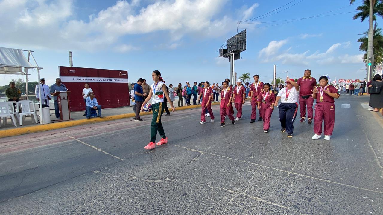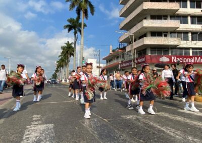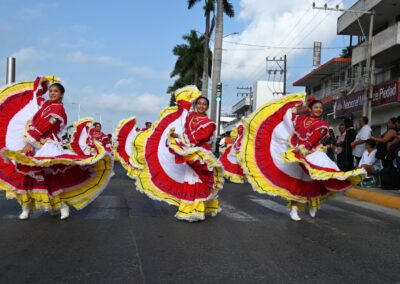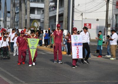 Tuxpan, Ver., 20 de noviembre de 2025.- Instituciones educativas de nivel básico, medio superior y superior, SEMAR, SEDENA, Guardia Nacional, Secretaría de Seguridad Pública Municipal participaron en el desfile cívico-deportivo con el que se conmemoró el 155 aniversario de la Revolución Mexicana.