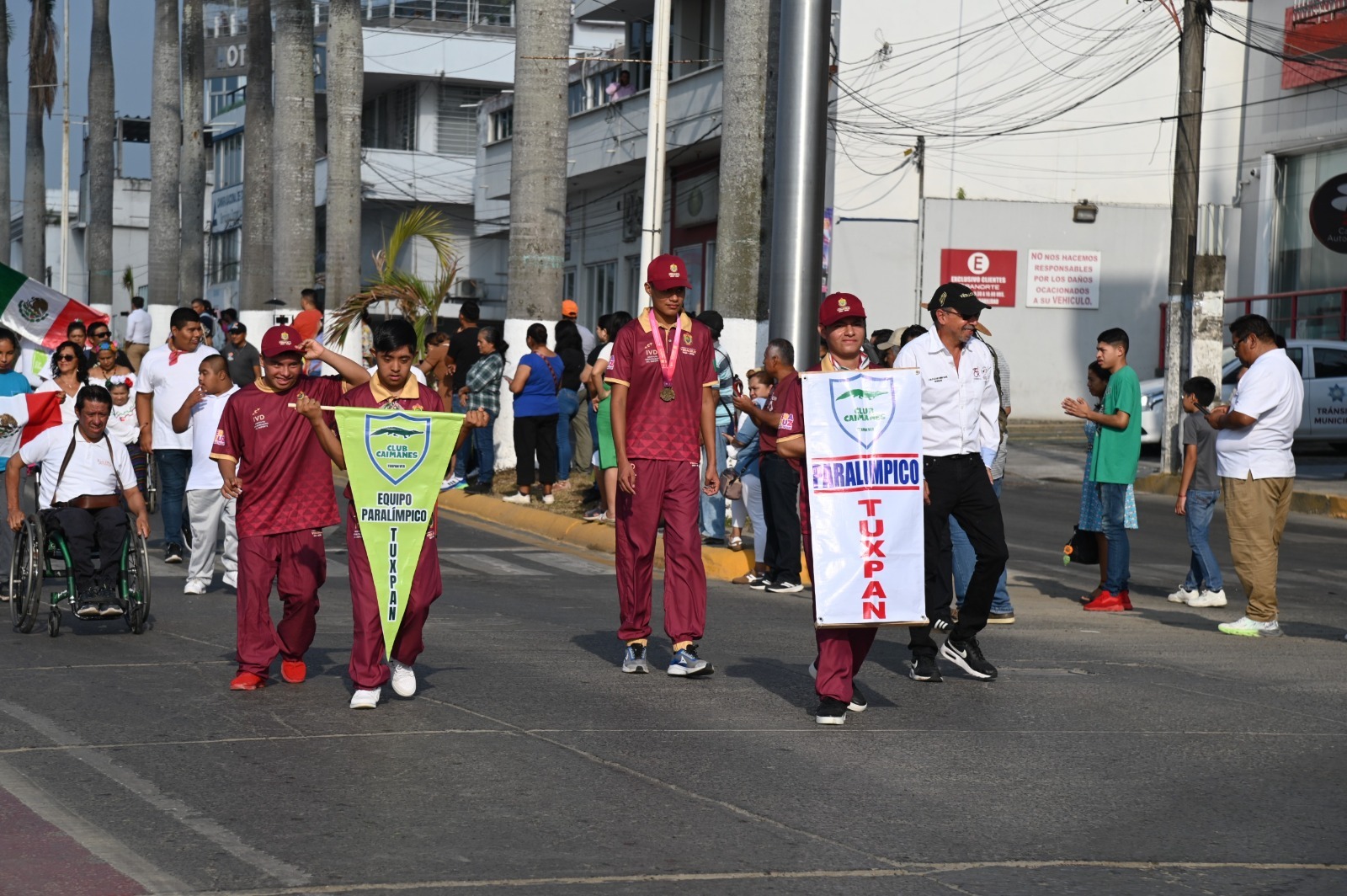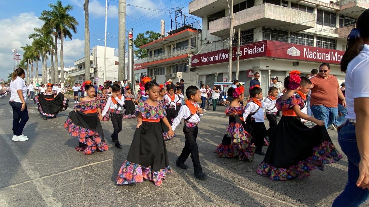 Familias completas se congregaron a lo largo del bulevar para apoyar a los contingentes, entre los que también estuvieron integrantes del Club Caimanes, COMUDE, Pentatlón y la escaramuza charra.