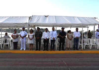 De la misma manera, la síndica única del Ayuntamiento, Mtra. Beatriz Piña Vergara; las regidoras y los regidores, Amado Gutiérrez Lima, Maryanela Monroy Flores, Juan Gómez García, Lucero Reséndis Ambrocio y Axel Bernal Herrera; el Prof. Jorge Arturo García Robles, director de Educación, y el Tte. Nav. Inf. de Marina Paracaidista Raymundo Torres Cruz, director de la Policía Municipal.