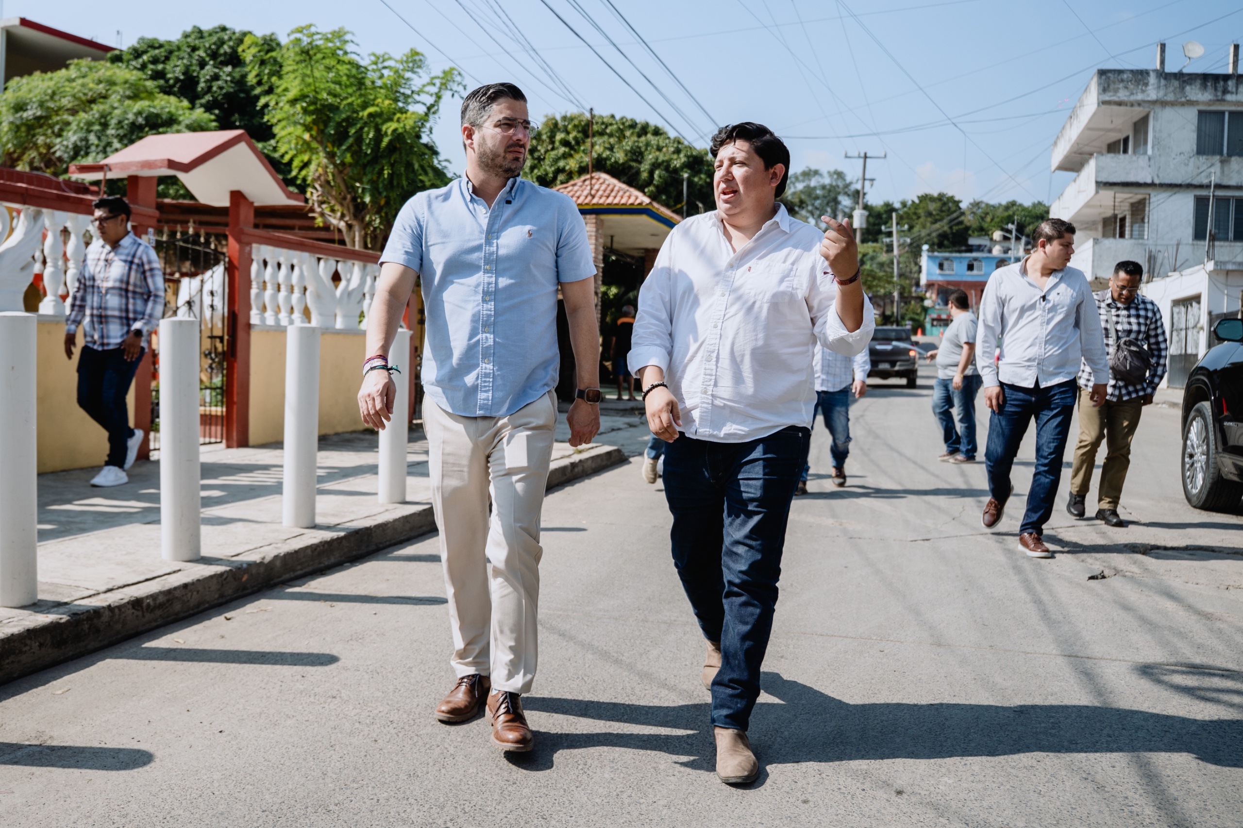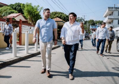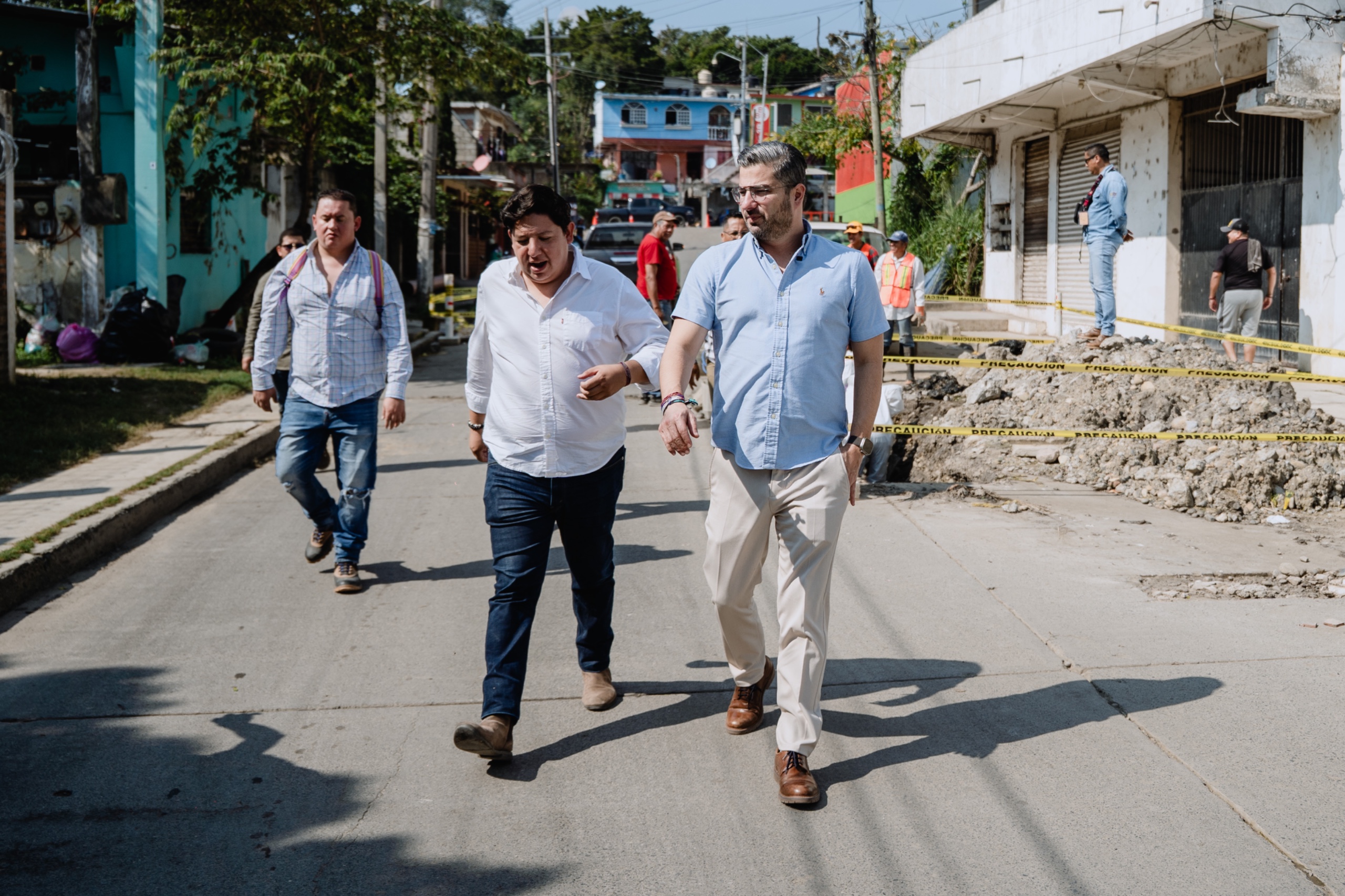 Tuxpan, Ver.— En atención a las peticiones de la ciudadanía, el presidente municipal Daniel Cortina realizó un recorrido de supervisión en la calle 18 de Marzo, en la colonia Anáhuac, donde se registra un socavón que afecta la movilidad y los servicios en la zona.
