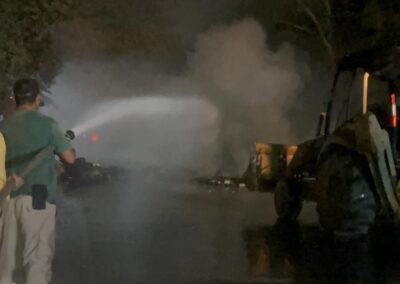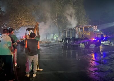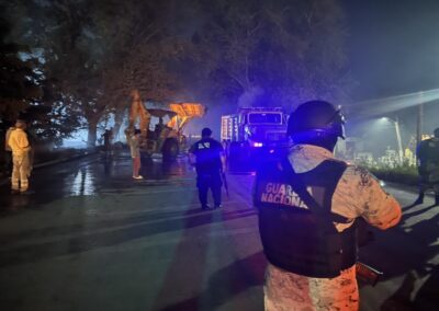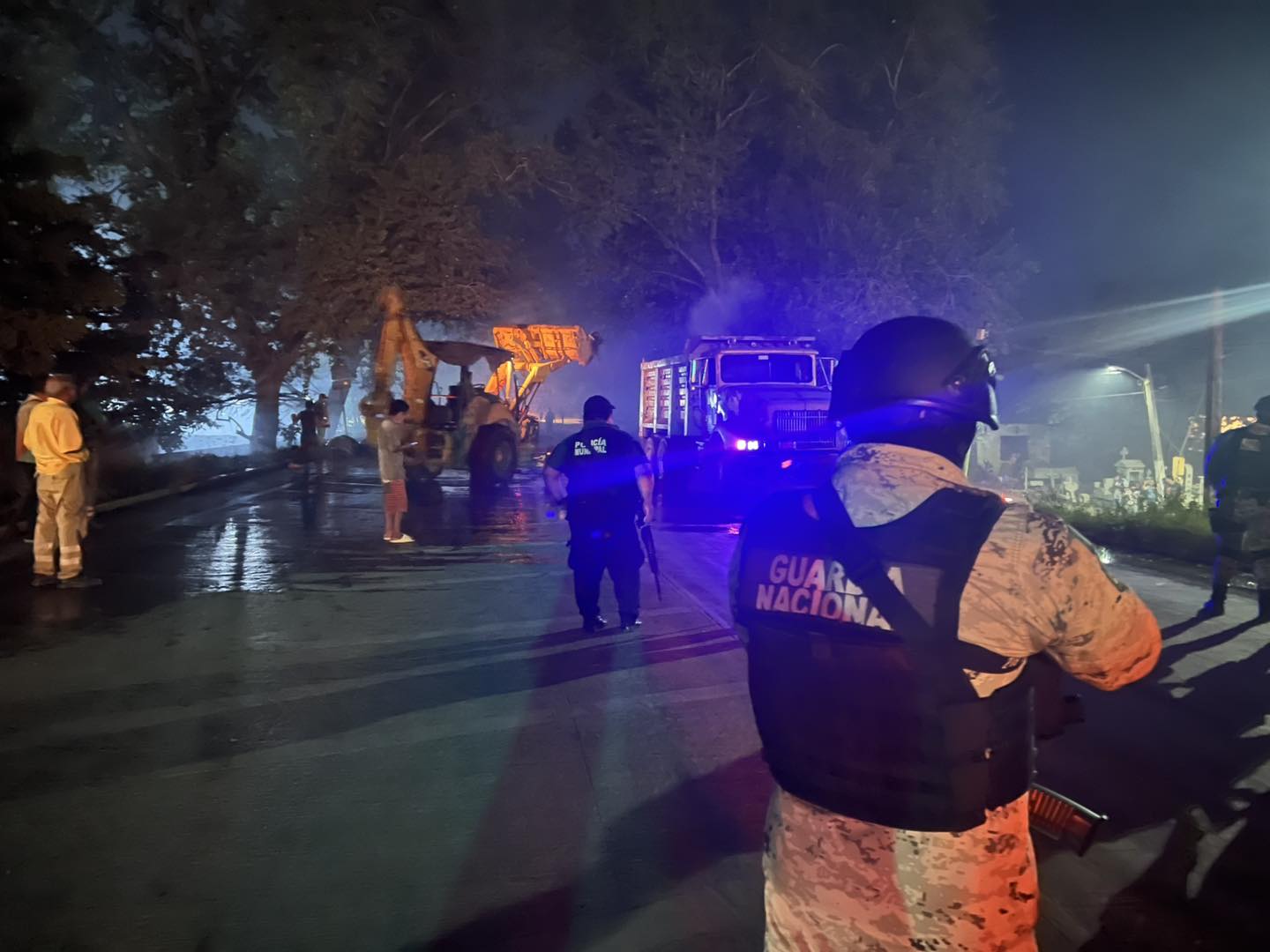 Ante la emergencia, elementos de la Guardia Nacional, Policía Municipal, Protección Civil y Bomberos Municipales arribaron al sitio para sofocar el incendio; minutos después, con apoyo de un traxcavo, los escombros fueron retirados para restablecer la circulación. La situación se extendió a la colonia Heroica Veracruz, donde los vecinos también se organizaban para una acción similar: bloquearon la calle Guanajuato con residuos y amenazaron con incendiarlos. Las corporaciones se movilizaron rápidamente para levantar los residuos antes de que se iniciara una nueva quema.