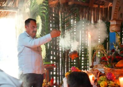 Danzantes voladores, maestras y maestros tradicionales formaron parte de una ceremonia cargada de espiritualidad, música, danza y sabiduría ancestral, que refleja la conexión profunda entre tradición, comunidad y territorio.