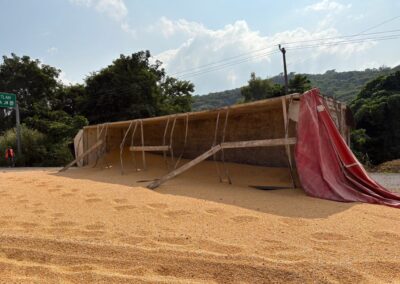 Aunque la unidad pesada quedó fuera de la cinta asfáltica, una parte significativa del alimento terminó esparcida sobre el camino. Esto obligó a las autoridades a implementar un paso vehicular intermitente mientras se llevaban a cabo las labores de limpieza.